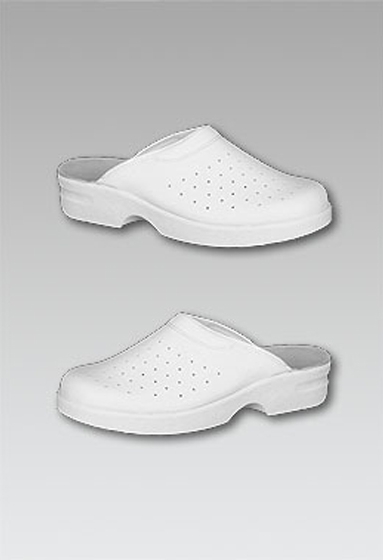 Fondo e tomaia in materiali termoplastici, resistenti alle alte temperature, antistatici, con alto coefficiente antiscivolo. Clogs con elevato assorbimento di energia al tallone ad effetto defaticante, fori laterali di areazione e plantare anatomico.
